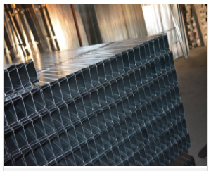 4)將豎龍骨按設計要求排列好,并安裝好加強橫龍骨,龍骨上的上下端用鉚釘固定,豎龍骨沖孔位置不能顛倒,保證各龍骨的沖孔高度在同一水平。